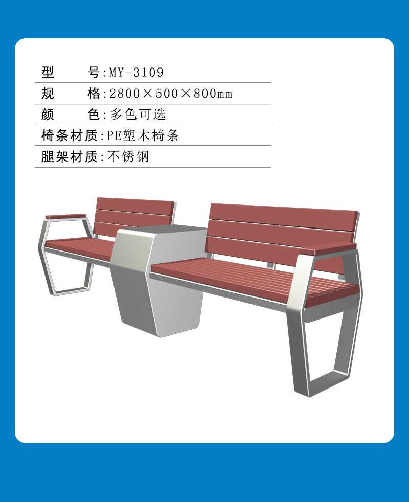 不锈钢塑木公园椅